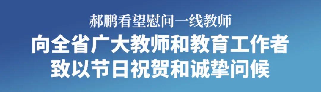 在第41个教师节来临之际,连日来,省委书记、省人大常委会主任郝鹏到我省中学、高校调研并看望慰问教师,代表省委、省政府向全省广大教师和教育工作者致以节日祝贺和诚挚问候。他强调,要深入学习贯彻习近平总书记关于教育的重要论述,大力弘扬教育家精神,全面落实立德树人根本任务,努力培养德智体美劳全面发展的社会主义建设者和接班人,为建设教育强省、推动辽宁全面振兴作出新的更大贡献。
