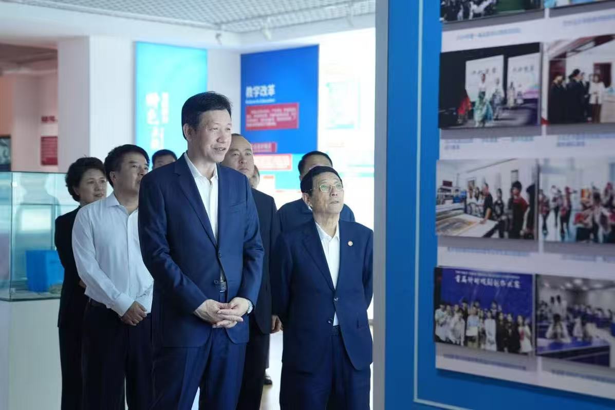 靳国卫实地考察了学校校史馆、美术学院、“一站式”学生社区和马克思主义学院,与相关负责同志及师生深入交流,认真了解学校历史沿革、特色办学、学科专业建设、思政课建设等有关情况。他指出,要深入学习贯彻习近平总书记关于教育的重要论述和对学校思政课建设作出的重要指示精神,充分发挥艺术学科专业特色优势,积极探索“艺术+思政”育人模式,推动思政教育与艺术实践深度融合,以美育人、以文化人。要积极推进思政课教学改革创新,结合艺术院校学生特点,挖掘专业课程中的思政元素,构建“大思政”工作体系,引导思政课教师主动走进学生、了解学生需求,用学生喜闻乐见的方式讲好思政课,不断提升思政课的吸引力和感染力。