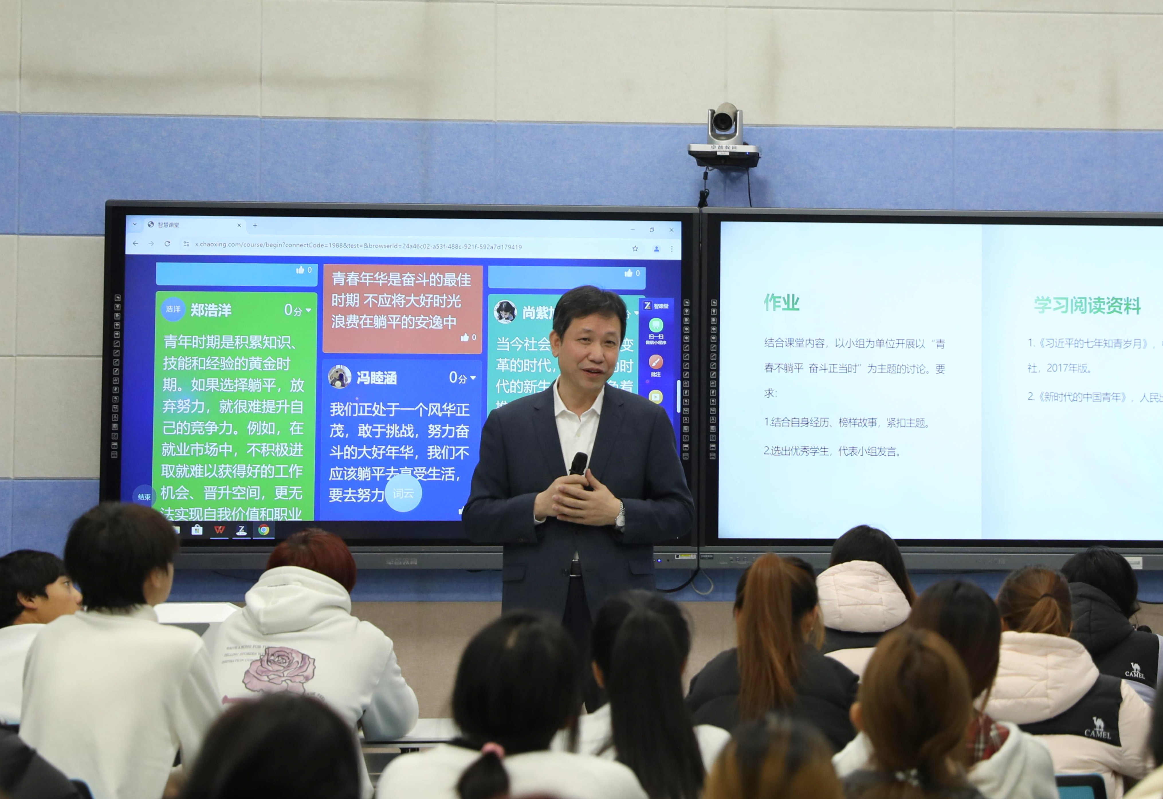 靳国卫强调,要全面贯彻落实党的二十大和二十届三中全会精神,深入贯彻习近平总书记在全国教育大会上的重要讲话精神和关于学校思政课建设的重要指示精神,与时俱进加强思政课建设,使思政课成为学生真心喜欢、终身受益、永远难忘的课程,帮助大学生树立正确的人生观,把自己的人生追求同国家发展进步、人民伟大实践紧密结合起来,通过不懈努力实现人生价值。