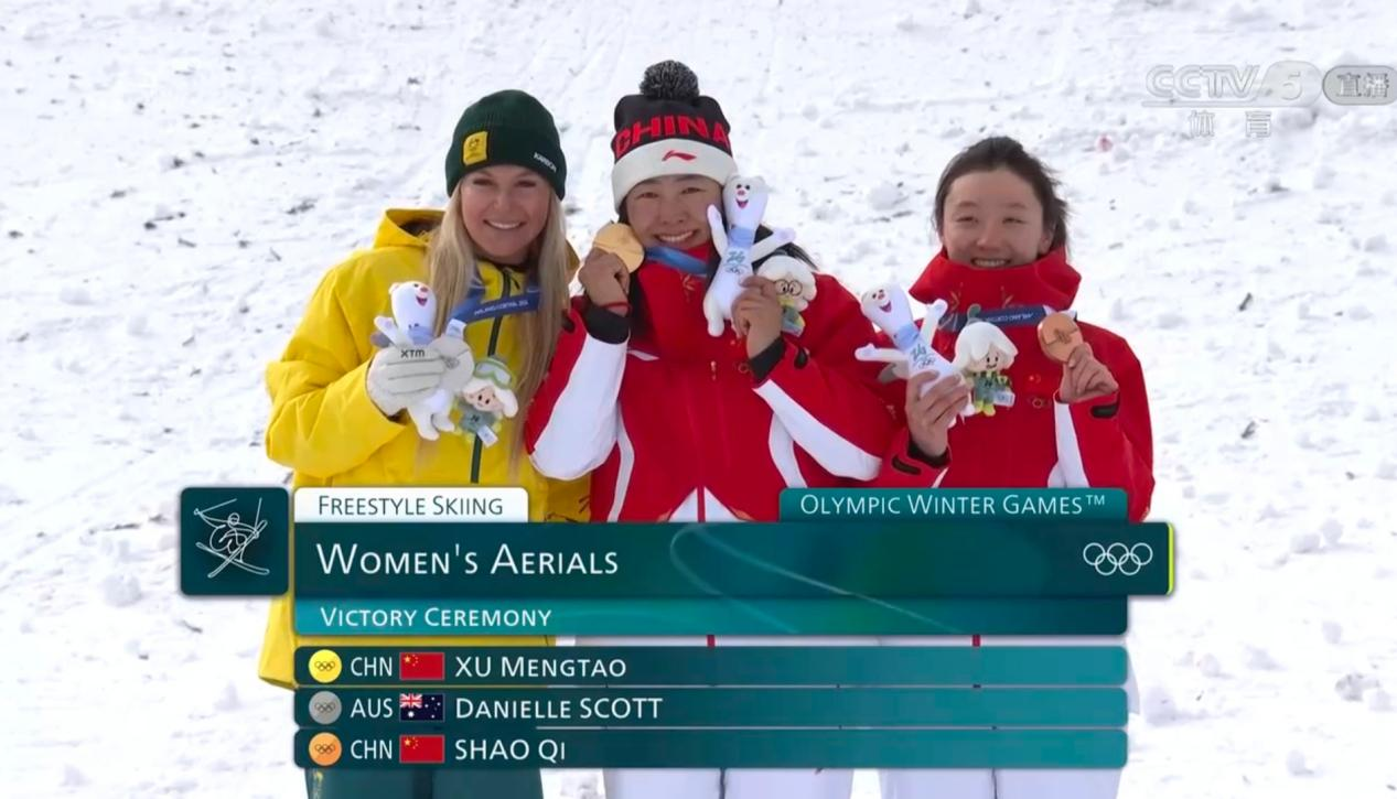 沈阳体育学院健儿在米兰冬奥会自由式滑雪女子空中技巧决赛摘金夺铜